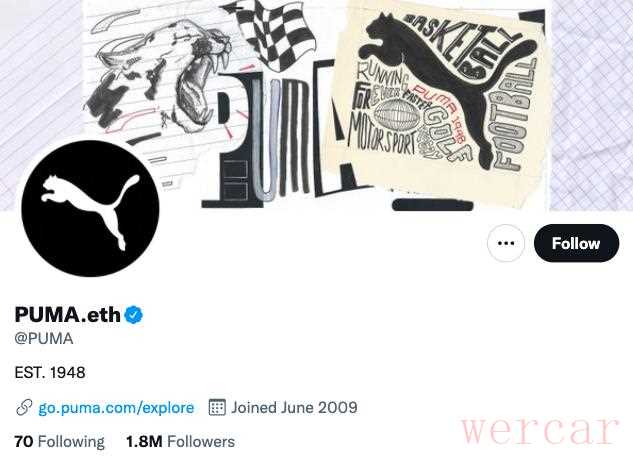 通过在推特上改名、该介绍,从而宣布自己对加密和Web3世界的态度,是一种很常见的方法。此前,红杉资本就在推特上将自己的愿景给改了,从帮助有冒险精神的人创建伟大的公司,改成:“从想法到落地,我们帮助富有冒险精神的人打造伟大的DAO。”然而在国际运动品牌公司中,彪马通过购买ETH域名的NFT,并改名的方法还是第一次。
