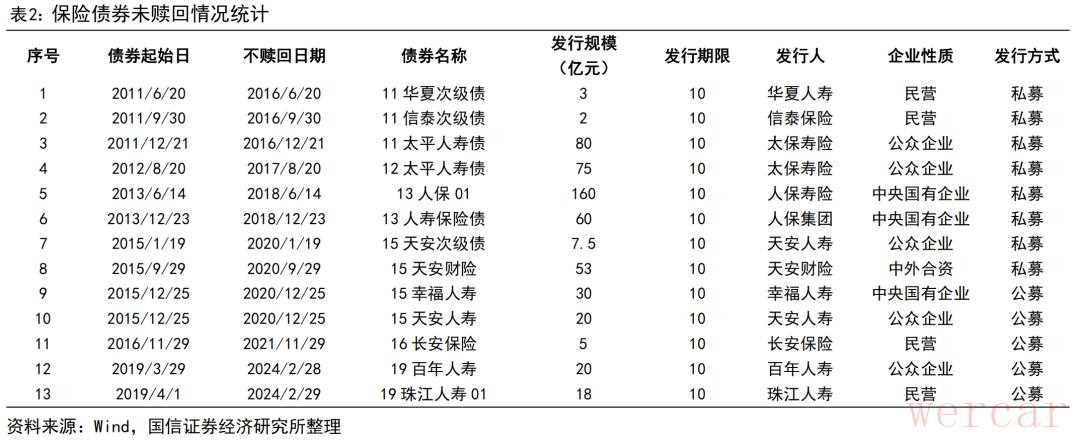 本次天安财险的债券违约事件,打破了保险业债券“零违约”的纪录,意味着金融市场长期存在的“刚性兑付”预期进一步被打破。投资者需重新评估金融机构,尤其是保险机构发行的资本工具的风险收益特征,市场定价将更加精细化。回顾历史上保险债未赎回的情况,其发行主体一般分为两类:经营状况不佳导致的偿付能力下滑的保险公司、被监管接管的保险公司。其中,天安人寿、天安财险、华夏人寿因偿付能力低于监管标准,被原银保监会接管。信泰保险、长安保险、珠江人寿为民营机构。以上保险公司均面临因资金不足导致的偿付能力持续下降,进而一定程度反应部分中小保险公司面临的经营及投资风险。