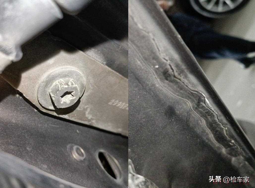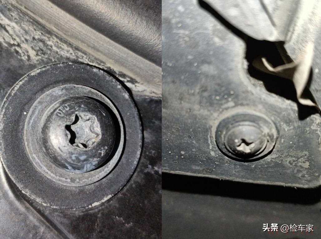 老规矩还是先检测外观,可以看到前杠固定螺丝有拆卸痕迹,前杠与翼子板接缝处间隙较大,前杠大概率是更换了,水箱框架固定螺丝也有明显的拆卸痕迹,难道这辆车前部有故事?接着往里看。