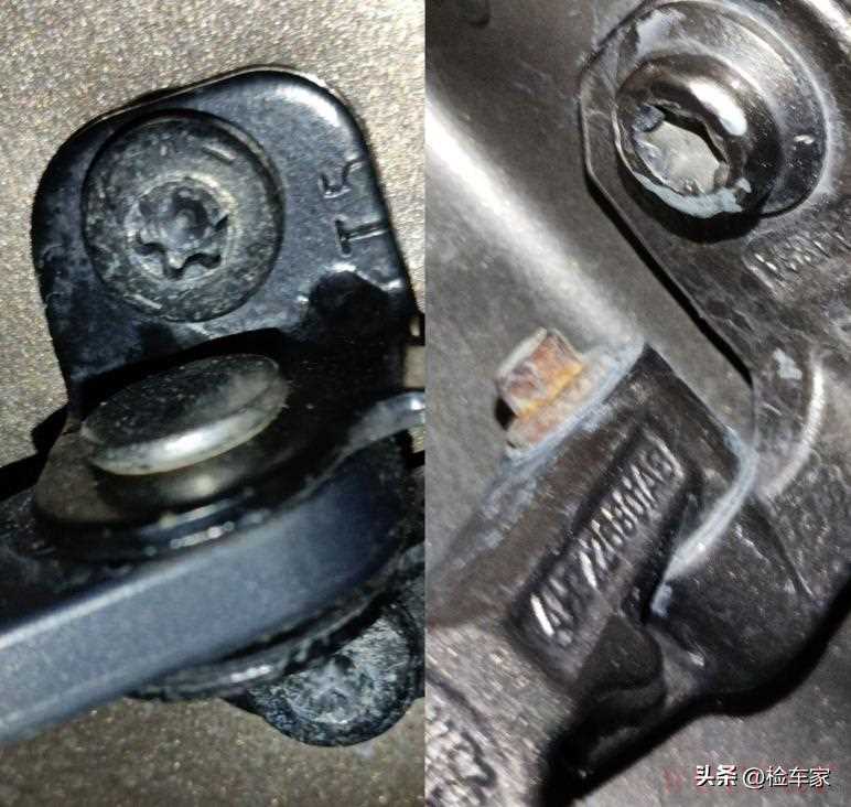 接着检测到左侧的前后车门固定螺丝均有拆卸痕迹,数值也比原厂数值低了不少,前后车门也换过。