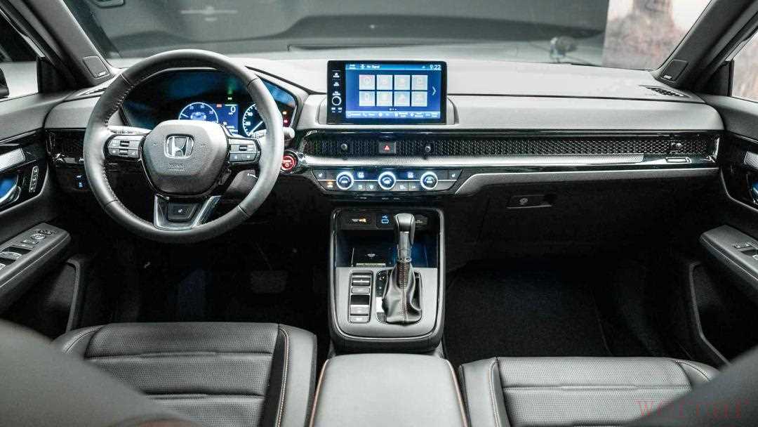 2. "内饰设计:" 内饰方面同样焕然一新,采用了更具科技感和质感的材质。中控台布局更加简洁,采用了大尺寸悬浮式中控屏,集成了Honda SENSING