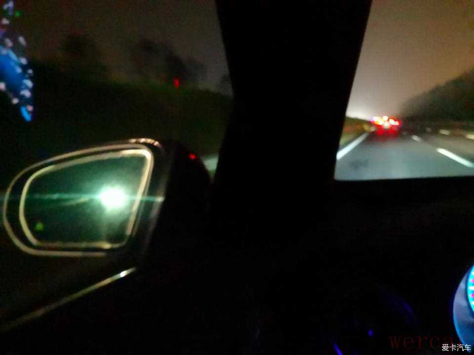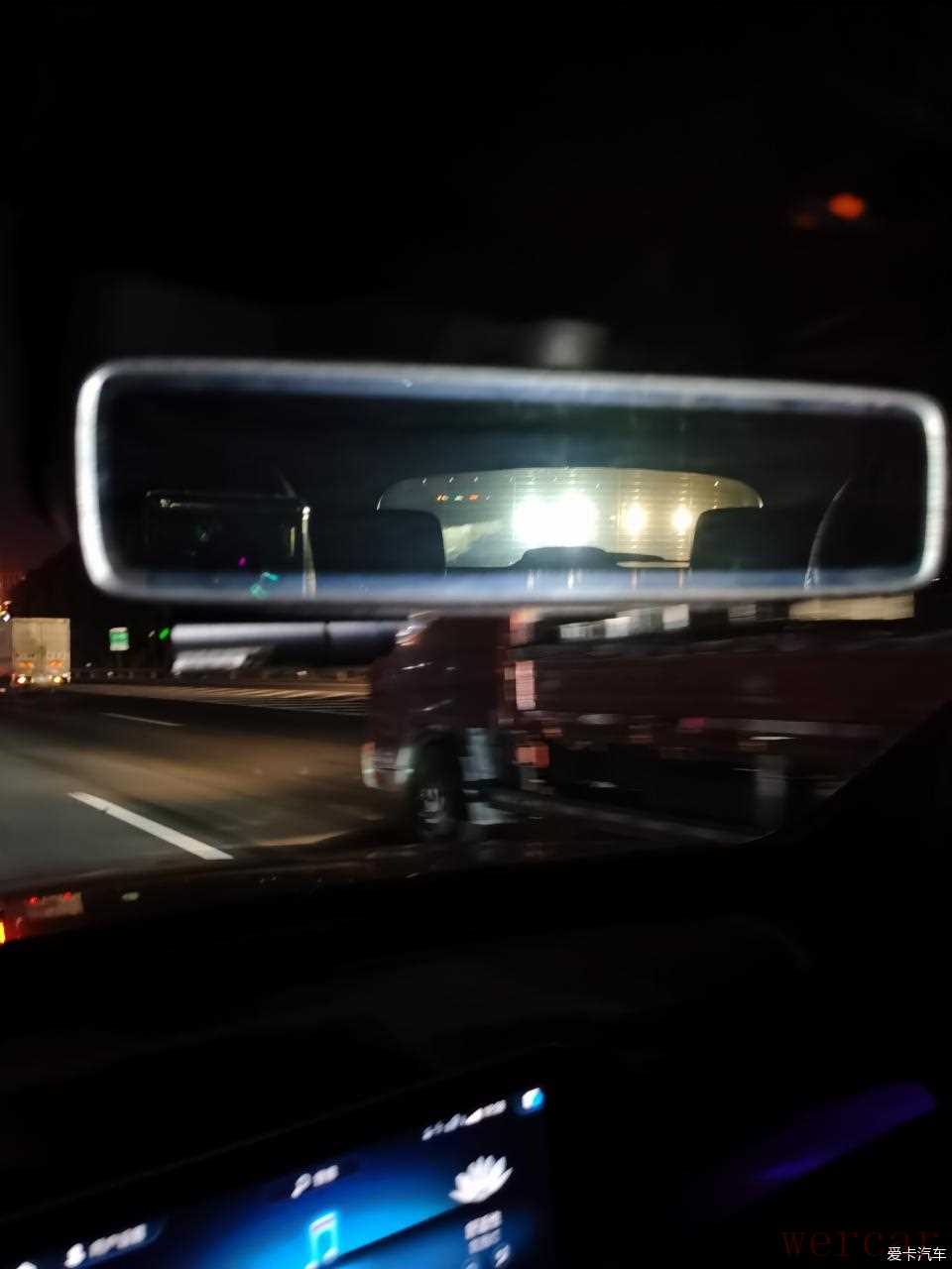 再说说一些小缺点把。我运气好,没遇到什么异响之类的问题。 不过原厂的防炫目,只有左侧后视镜、内后视镜有,右侧后视镜没有。搞不懂奔驰在想什么。而就算有的,个人感觉效果一般般,不如我以前的福特翼虎的防炫目效果好。如图,左侧后视镜算是防炫目效果好的了,都是这样还是挺刺眼的。而内后视镜防炫目效果还要差一点点