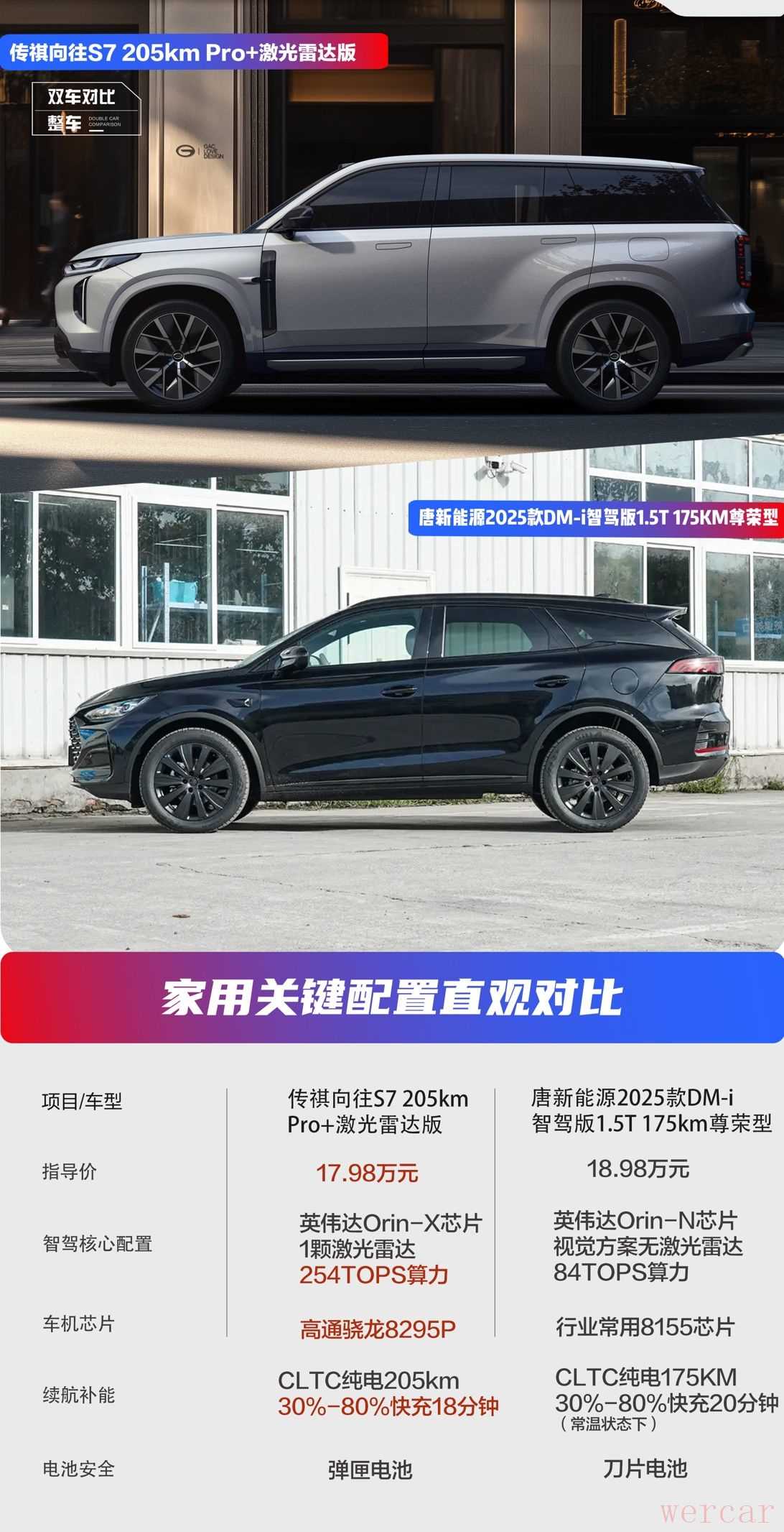17万级家用插混SUV,广汽传祺向往S7和广汽埃安唐新能源(通常指DM-i版本,如冠军版或Pro版)确实是这个价位段非常有力的竞争者。两者各有优劣,选择哪个更合适取决于你的具体需求和使用场景。