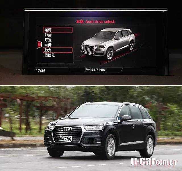 Q7的驾驶模式包括:Effieciency节能、Comfort舒适、Auto自动、Dynamic动力和Inpidual个性化等模式,在每一样的模式中,藉着奥迪工程师调校,引擎、传动系统、悬挂系统软硬与转向辅助力道有着不同程度的变化。