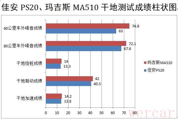 通过这几项测试数据呢,首先,我们刚才在社会道路以及场地测试中,在噪音控制方面佳安PS20表现的很不错。第二在支撑性与制动性上因为胎面的高刚性蠕动技术和含硅配方在干湿地的绕桩测试和干湿地制动方面也是可圈可点,尤其是支撑性,因为科鲁兹作为一款稍微有那么一点运动性的三厢车在这种高速绕桩时,可以说是游刃有余了。