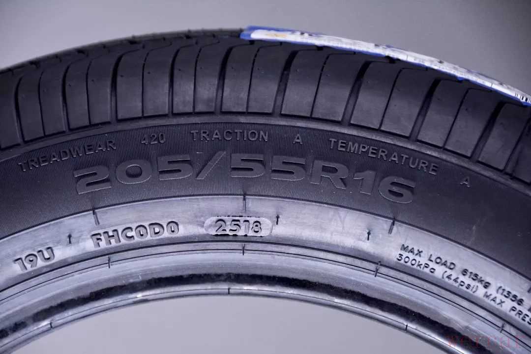 这次拿到的测试轮胎规格是205/55/R16,先看一下他的外观,通过硬度仪、花纹尺测量的数据我们够看到,佳安PS20的胎冠、胎肩、胎侧硬度分别为 66、62.5、46.5HA,主排水槽与辅排水槽深度为7.71mm&7.47mm 从这几项采集的数据尤其是硬度数据来看佳安PS20相对来说是偏软的,这是因为胎面采用了柔性胎面配方,弱化了接地冲击,这样一来胎噪也就降低了,但是啊,软就未必不耐磨,这个我们会在场地测试后再跟大家解释!