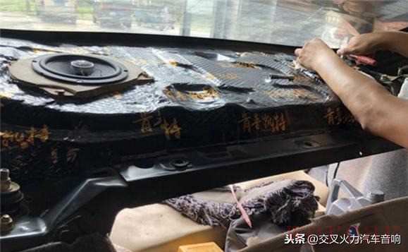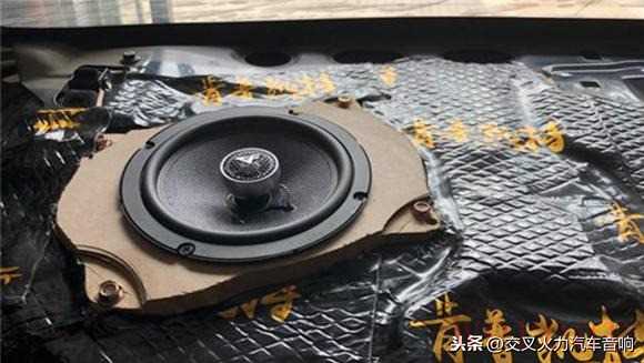 比亚迪f6 的后声场喇叭没有在后门上,而是在后挡板上,后挡板原车没有任何隔音材料。为了避免喇叭在工作的时候铁皮发生共振异响,所以选择做了隔音。因为原车喇叭5*7寸的,后改喇叭是6.5寸的。所以要重新制作喇叭垫圈。后声场车主选择的是交叉火力-602同轴喇叭,这样就会使前后声场喇叭的音质效果能协调一致。