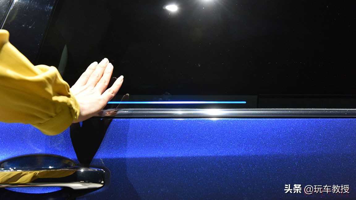 具体来说,在侧门车窗下部会一条蓝色灯带,触发的前提条件是手持钥匙或钥匙在附近,同时手与门的距离在1.5厘米以内。此时手向后移动侧门就会开启,而想要侧门在中途某个位置停止,手触碰或者远离车门都可以,这样的好处是既能保证自动开启时碰撞了物体,同时也能让侧门不必完全打开,特备是在下雨天,只需开启能通过的缝隙即可。
