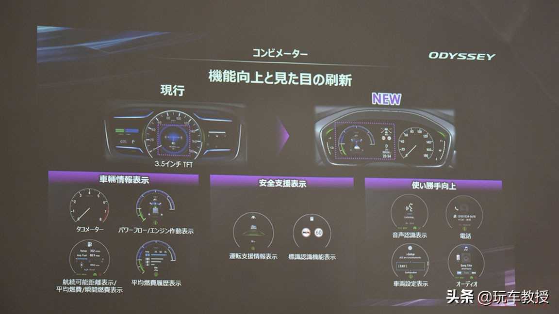 其中时速表被放在了右侧,油量条也从横置改为竖置;左侧是动力信息,包括辅助安全系统等。新设计有助于仪表功能的散布,而不是像之前那样大量信息显示集中在中间,据悉此改变是由于车主回馈的不足而来的。