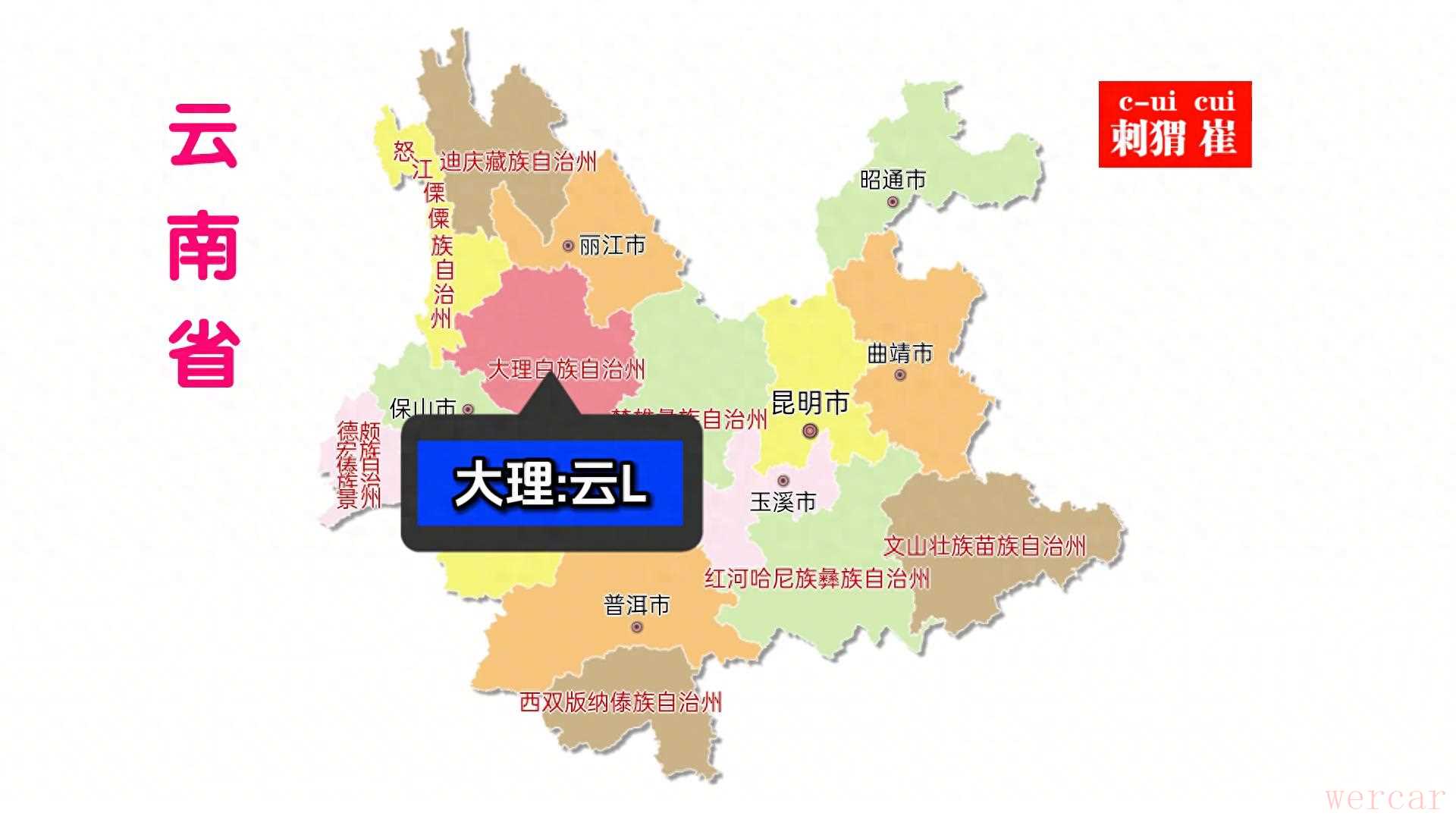 云南省还有其他的车牌代码,分配给不同的地州市,例如: