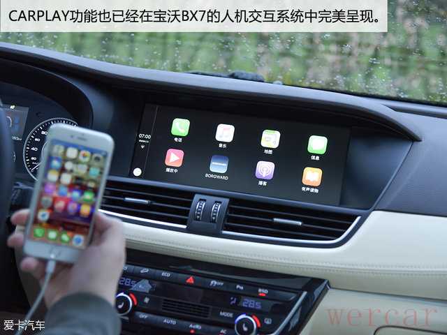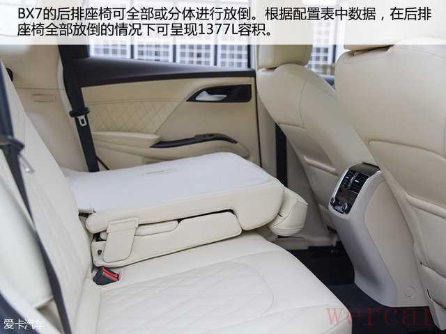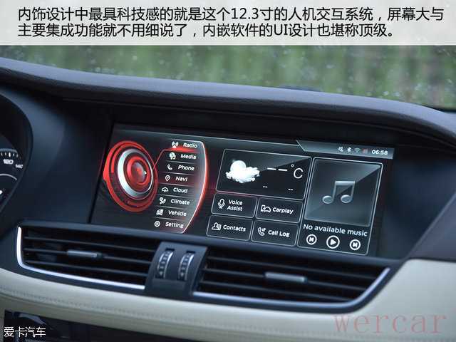 BX7的内饰用料与装配工艺都十分惹眼,虽然没有定价,但坐在其中总有种坐入百万级豪华SUV的错觉。与奔驰新S风格相同的环抱式仪表台显得格外奢华,功能分区清晰明了,内置软件UI设计也能看出是花了大精力进行制作。而挡把周围的人机交互按键平台安排也十分合理,虽然我本人觉得这个设计或许稍微借鉴了MMi系统的一些使用理念,但最起码BX7将最好用的部分保留了下来,并加入了很多自己的想法。