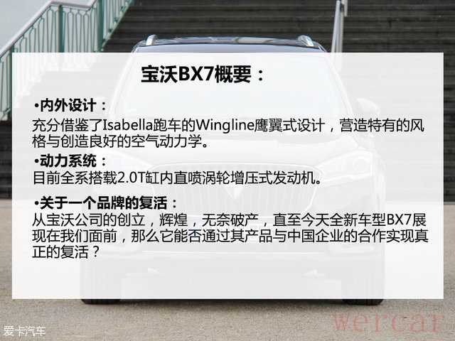 "品牌总部:" 宝沃汽车总部位于德国不莱梅。BX7是宝沃在品牌复兴后推出的重要车型(基于PSA集团的技术平台),其研发和生产都与不莱梅地区有直接联系。