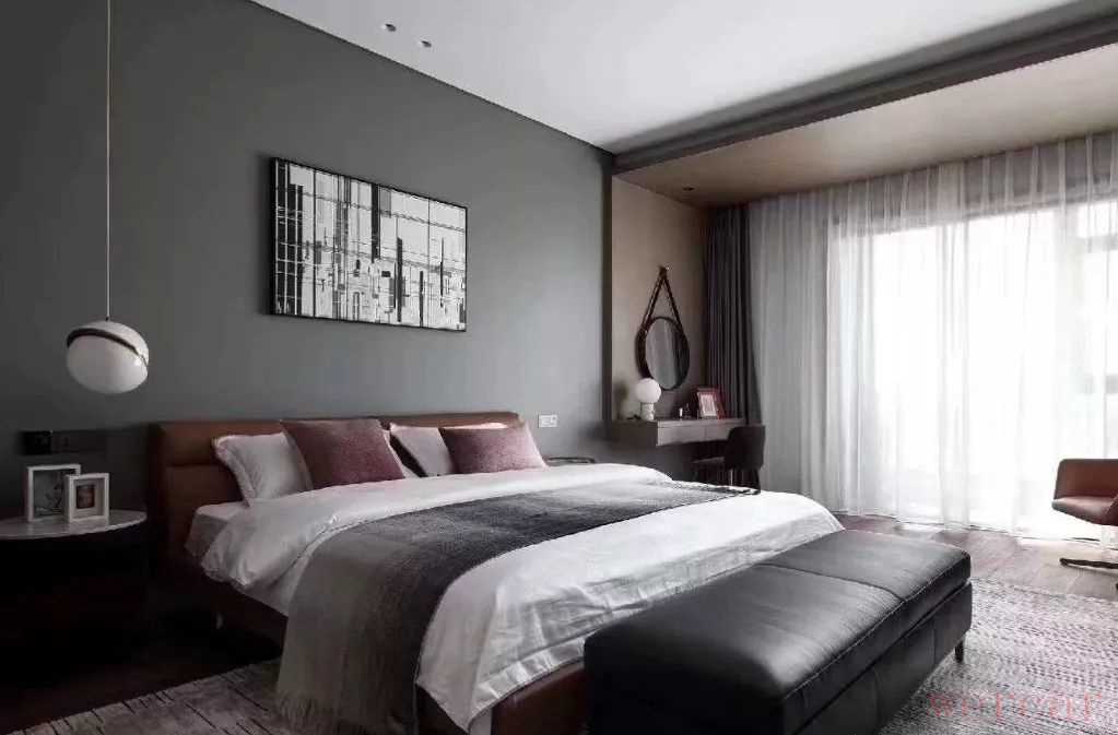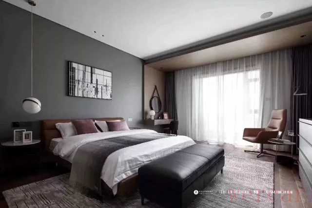 卧室以蓝灰调为主,全力呈现生活的平静和安逸