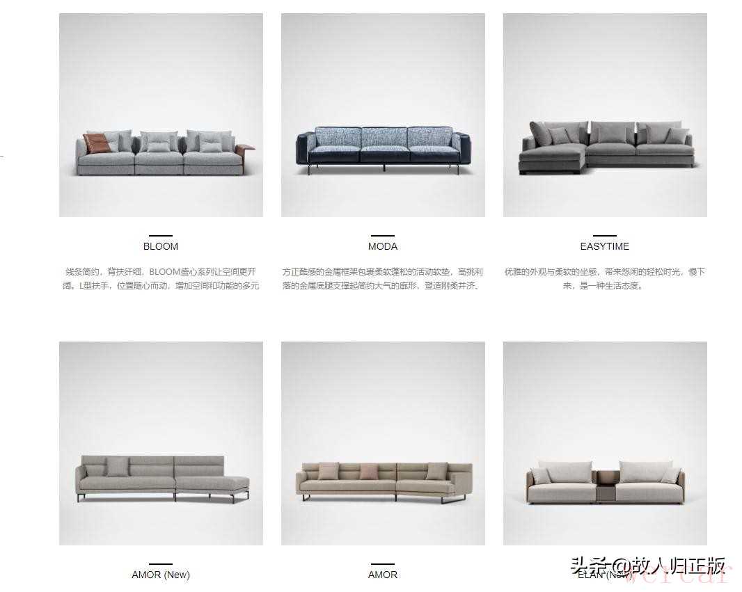 意式品牌baxter、GIORGETTI、Poltrona Frau, B&BItalia,Molteni&C这些牌子固然设计和品质都很顶级,但是本身的品牌溢价也非常之高,一款沙发动辄几十万