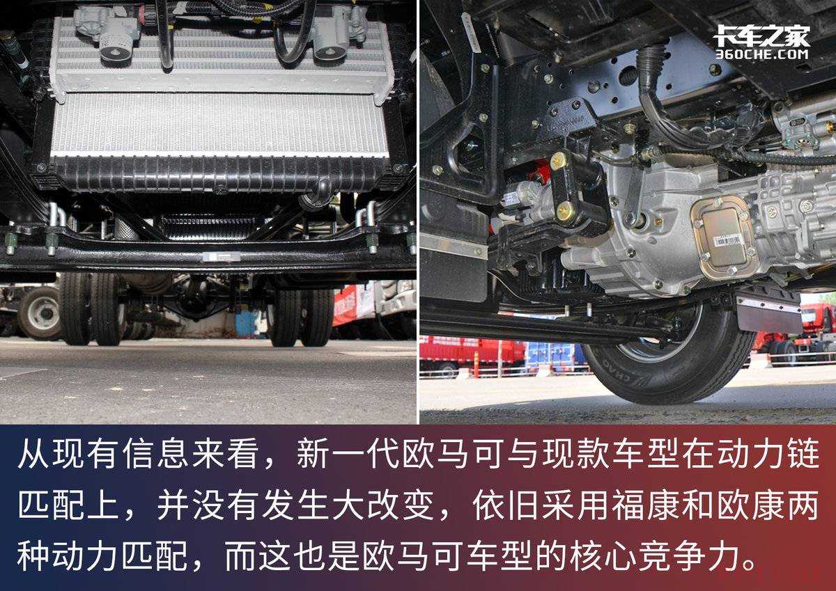 新一代欧马可实车适配了福康2.5升130马力发动机,可输出400牛米大扭矩,也可选装福康2.5系列更大马力和欧康F2.5系列发动机。