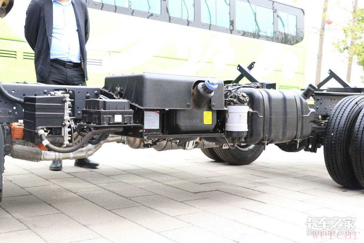 而动力电池是由盟固利提供,标称容量为40Ah,额定电压为350.4V,双擎驱动,启停快,相比传统油车,动力提升大约35%,最高时速可以达到110km/h,足以保证运营的时效性。