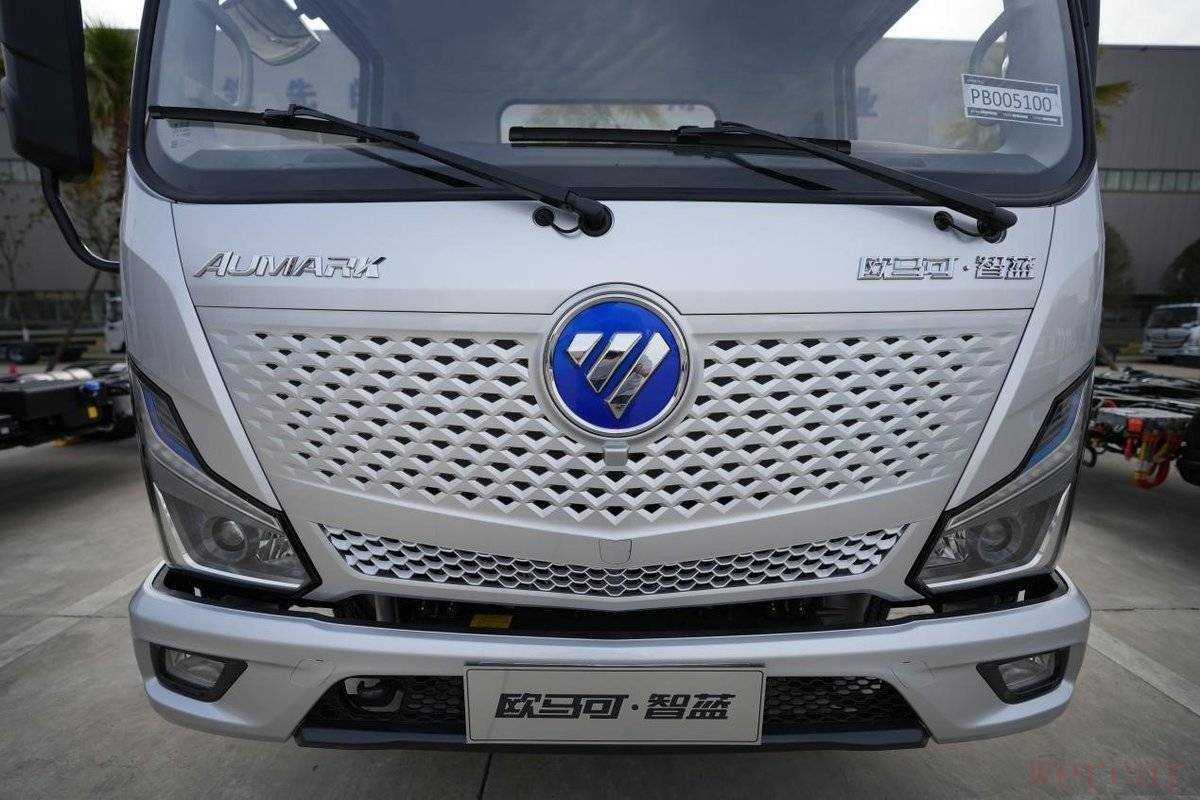 福田欧马可智蓝H系列混动轻卡依托LE4平台打造,前格栅在保留了原有家族脸风格设计的前提下,采用满天星式设计,并且增大了前脸的LOGO,智蓝系列经典的蓝底,看上去很亮眼。