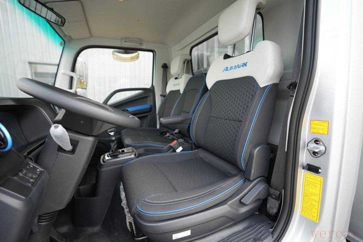 驾驶室内也采用的是全新一代的设计,增加了很多蓝色装饰,包括座椅、出风口、门板上等,拼色座椅增加了运动感。主驾驶座椅可选配通风加热、气囊减震、皮质座椅,并且三个座椅可放倒,形成一个平面,单排座椅也可变身为一个小卧铺,驾驶员可以躺平休息。
