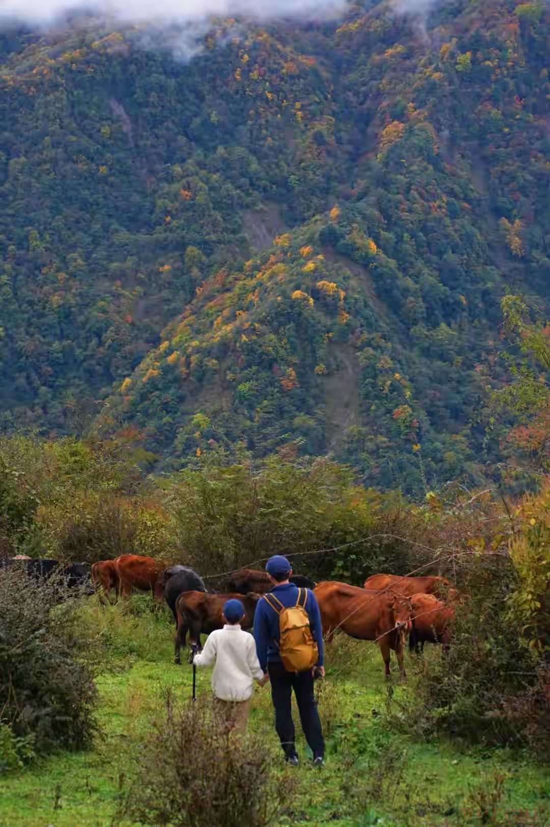 骚操作:不想徒步?直接开车盘旋上山!每个弯道都是不同色号的彩林盲盒,山顶草甸还有野生摄影师(指吃草的牛马)当免费模特~(用游戏化语言改写)