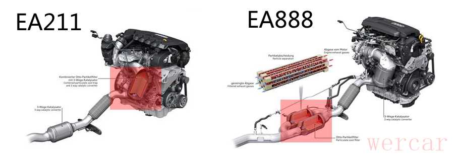 迈腾和帕萨特均安装了颗粒捕捉器,但也要留意到,EA888和EA211颗粒捕捉器布置的位置是不一样的,EA888 颗粒捕捉器布置的位置在地板下,离热源较远,不利于再生净化策略实施,发生堵塞的概率相对较大。EA211颗粒捕捉器安装位置较靠近发动机,排气温度较高,有利于再生净化策略的实施,这也是探岳、途观L等车型颗粒捕捉器故障反馈比较多,而大众旗下1.4T车型的反馈则相对较小的原因。