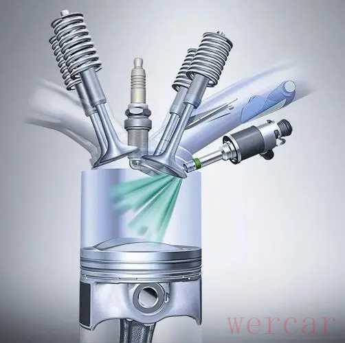 缸内直喷直接将燃油喷入气缸内与进气混合,EA888的缸内直喷喷油压力可以达到200Bar,能精确控制瞬时喷油量,同时确保在短时间内油液充分雾化,进而更充分燃烧,提升性能。但缸内直喷也容易产生积碳,在低负荷工况阶段,由于缸内混合气体中的氧气过量,多余的氧气容易与混合气体中的氮气发生反应,产生氮氧化合物,影响尾气的排放。另外在冷启动工况下,汽油与空气的混合时间短,局部会出现混合不均匀等缺点。