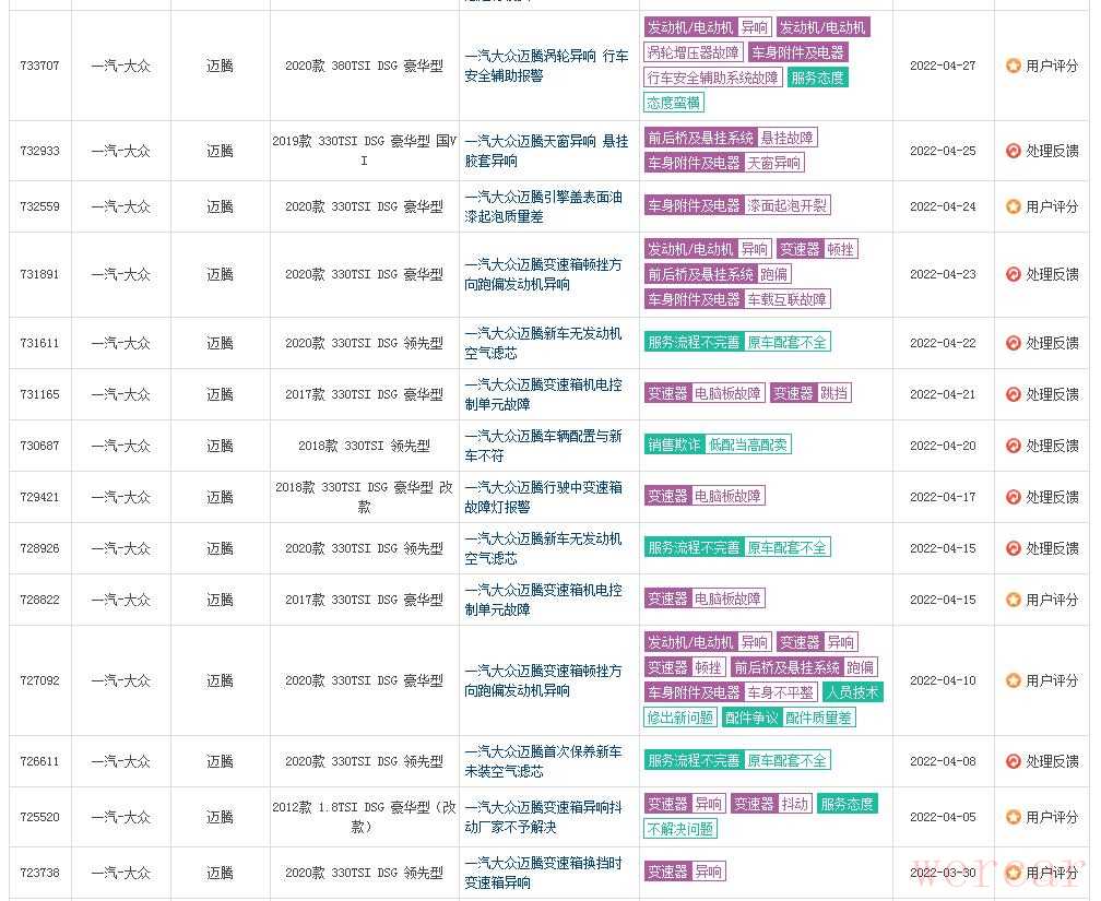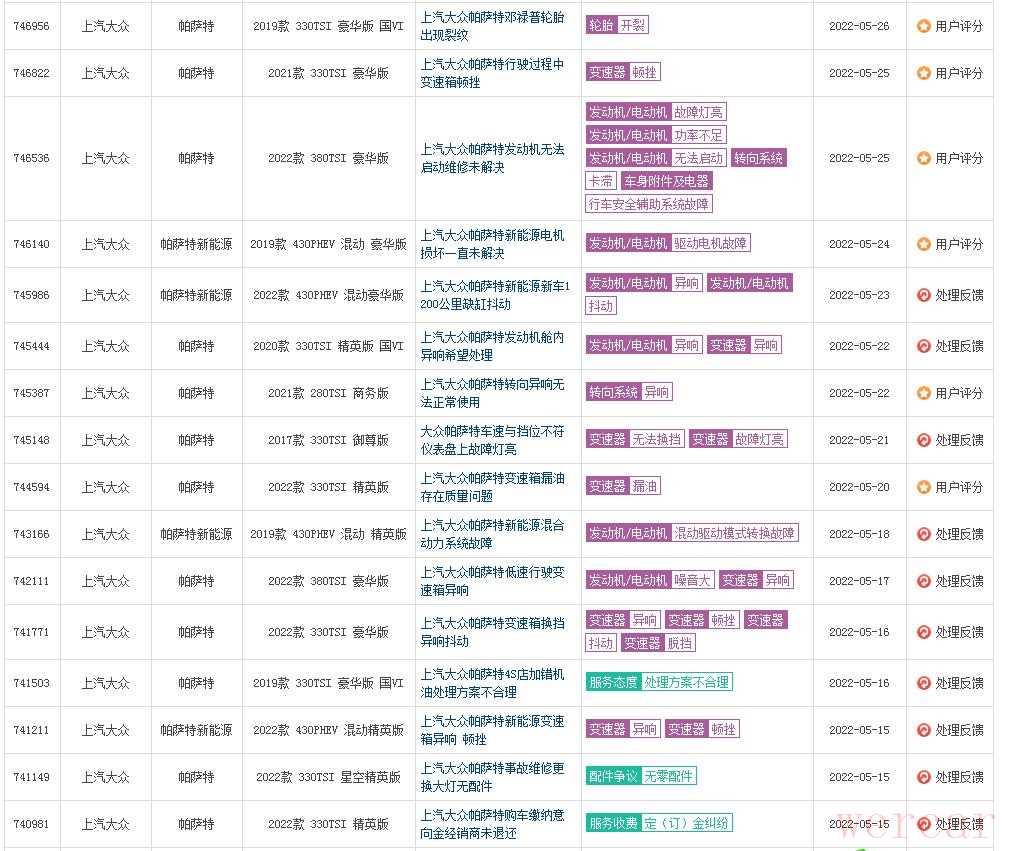 搜索车质网的具体投诉问题列表可以看到,无论迈腾还是帕萨特,关于烧机油的投诉已经不多,第三代EA888发动机针对此问题的优化措施仍然是比较有成效的。