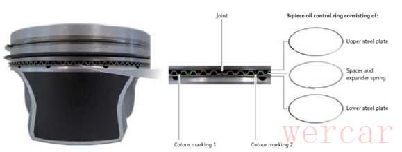 这两个问题,在三代机型上均得到了针对性的改善。三代机型的活塞环采用了波浪状的设计,增强了刮除机油的效果,另外活塞环的数量也从2道增加到3道。