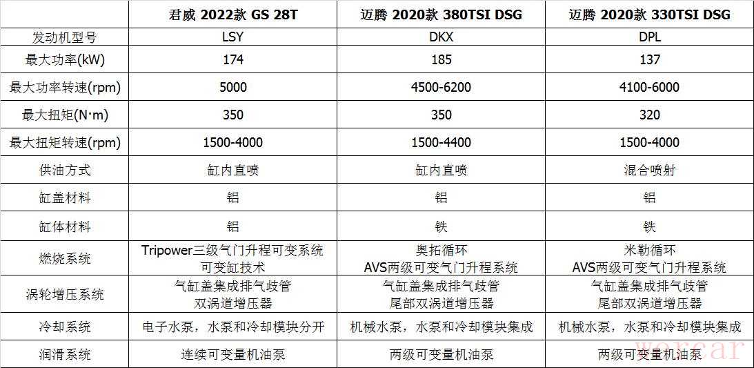 在2.0T发动机当中,大众(奥迪)的EA888、宝马B48发动机和奔驰M274发动机,是目前三大品牌主打的发动机,也属于2.0T发动机中的“明星机型”。但如果具体到迈腾和帕萨特上的DKX和DPL系列,横向同级比较的话,则以同样作为中型轿车别克君威上搭载的型号为LSY的通用Ecotec2.0T发动机更具意义。以下便对这两款发动机延伸出来的三个型号,对其中一些关键技术进行对比。