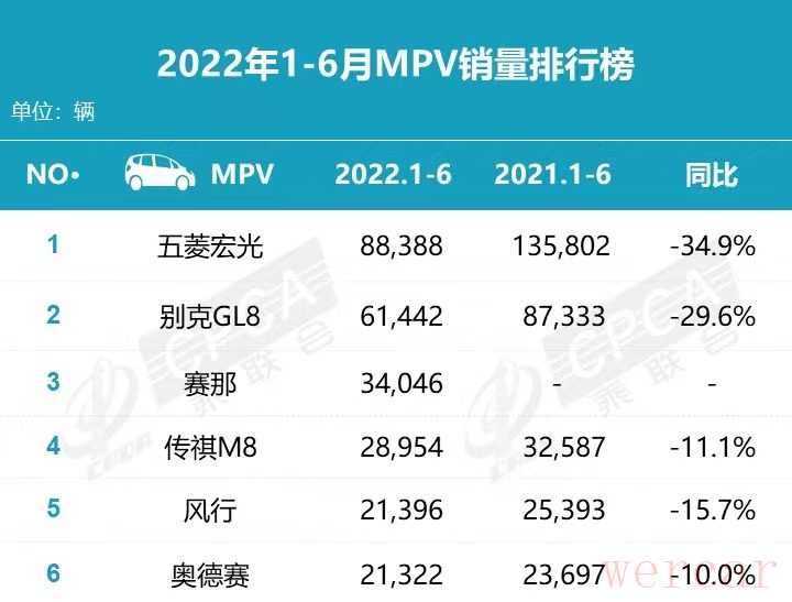 而排在第五的居然是6月份刚上市的一款全新车型——五菱佳辰,实属令人意外,且更值得一提的是,该车上市一个月就取得了近3000辆的成绩,这比丰田赛那强多了。