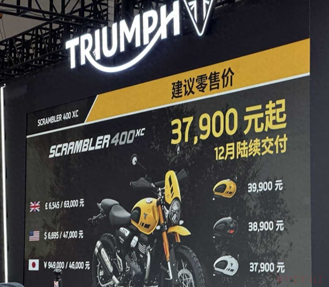 "品牌与车型:" 凯旋 (Triumph) 推出了其复古越野摩托车——Scrambler 400 XC。