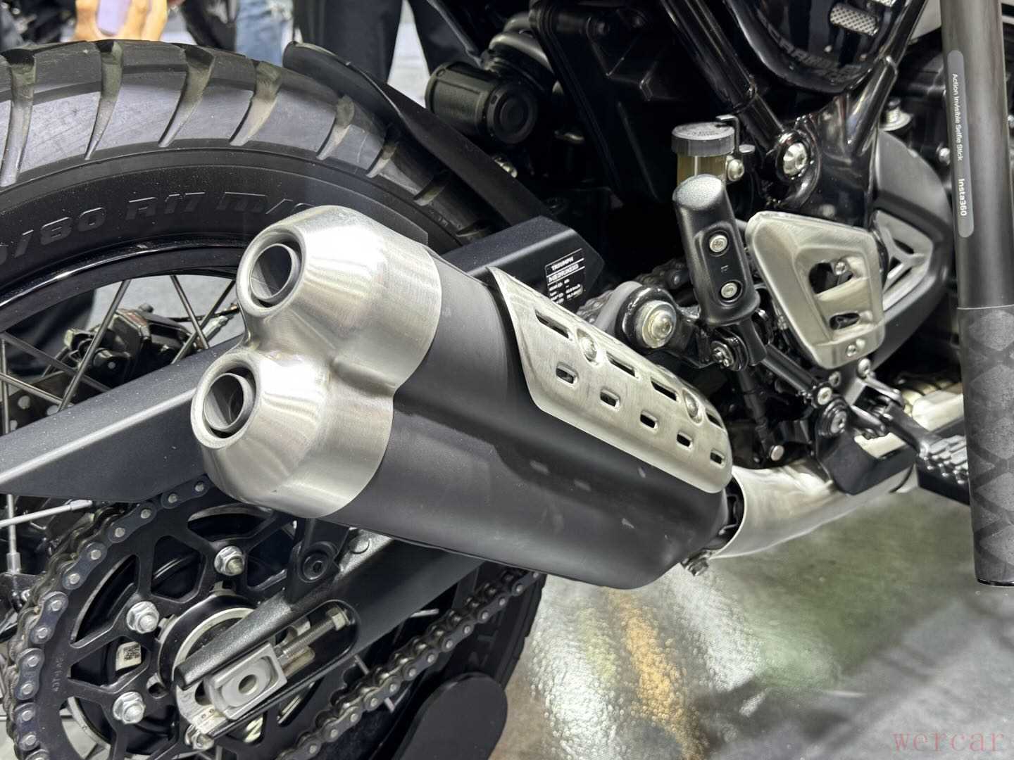 Scrambler 400 XC配备了原厂护手,轮辋采用铝合金辐条式设计,使车辆能够更好的应对非铺装路况。轮胎则使用了真空胎,这也使得户外补胎操作更加便利;其前、后轮尺寸分别为100/90 R19和140/80 R17。据了解,该车的整车重量为186公斤,比Scrambler 400 X增加了7公斤,座高为835毫米。