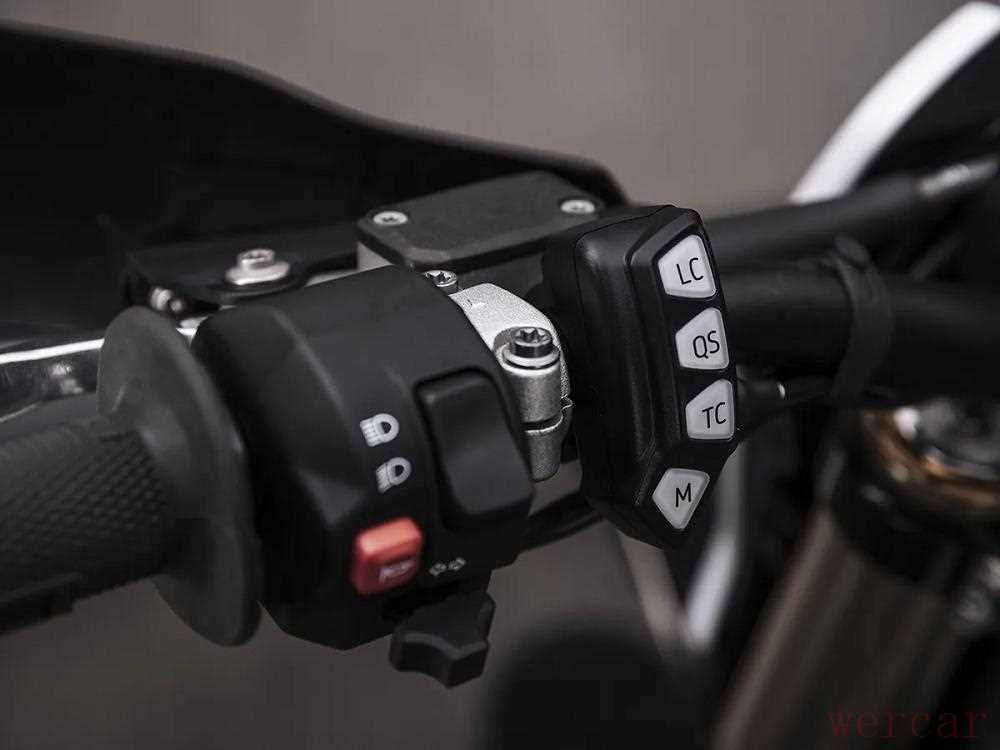 电控系统具有牵引力控制(TCS)、弹射起步(Launch Control)、快速换挡(Quickshifter)、双动力模式等等