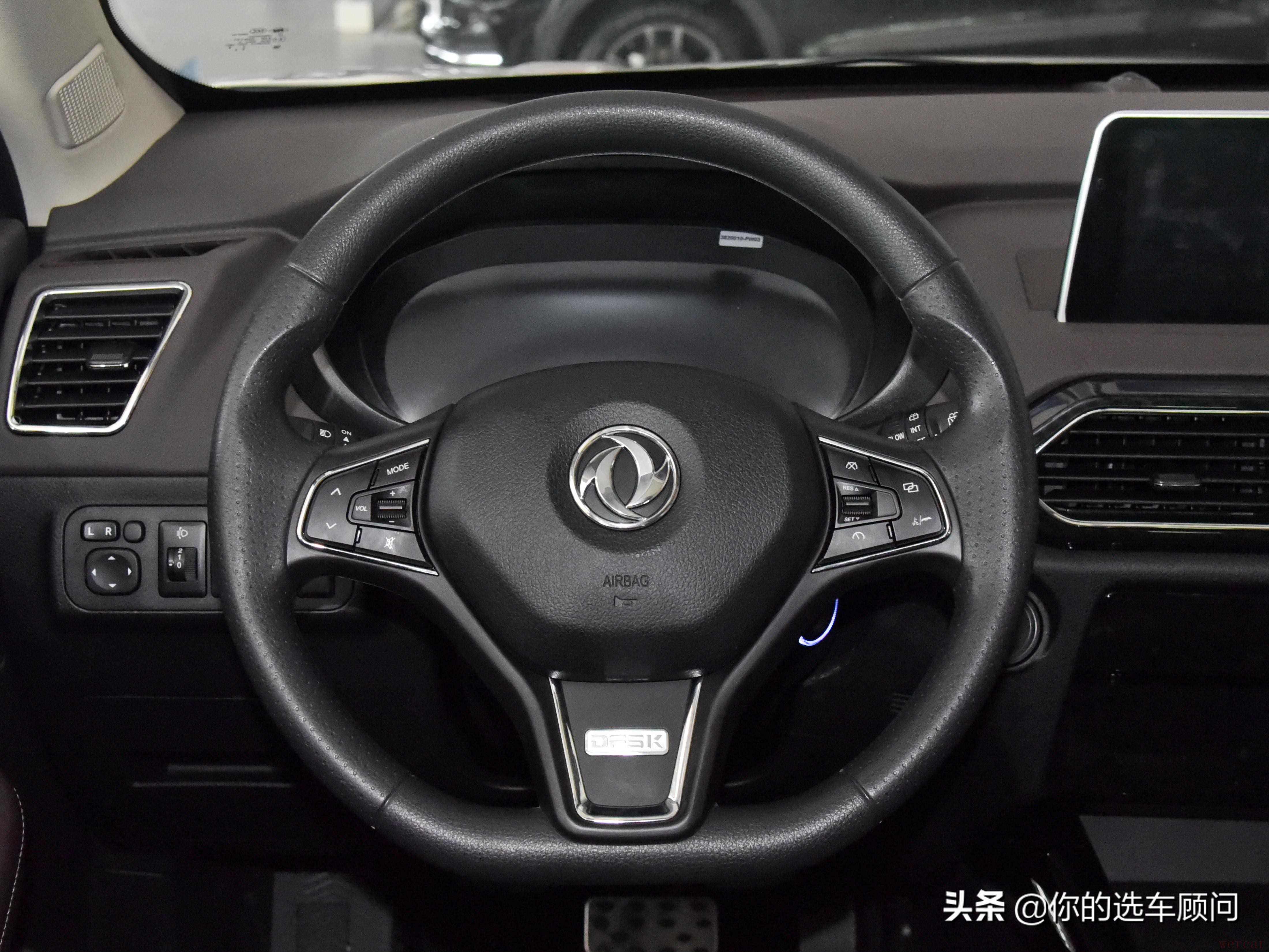 风光S560的扁平底部三辐式方向盘的设计十分抢眼,其采用了塑胶材料打造,标配方向盘上下手动调节。与此同时,车仪表呈现了独特的设计样式,突出了时尚的气质,非常抢眼。