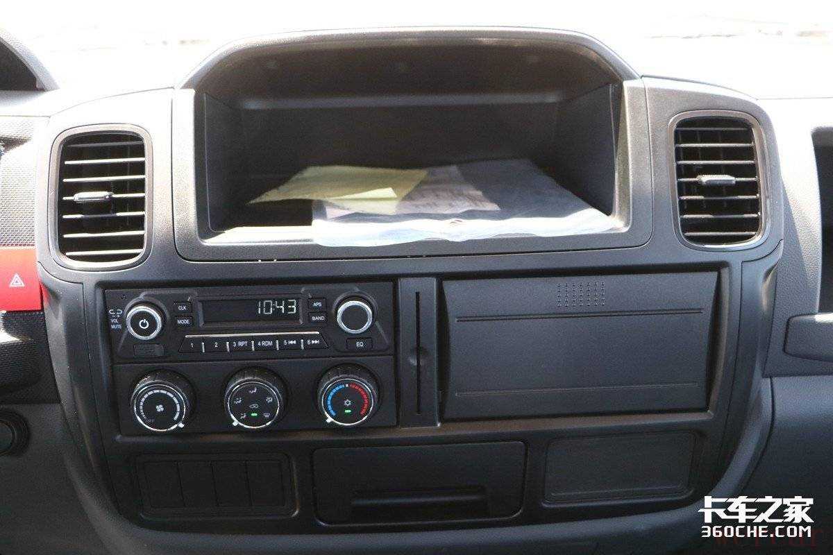 在中控台设计上,其风格与东风轻型车的其他轻卡车型比较相近,最上面有一个巨大的储物格。下面是收音机、手动的空调及一个封闭式的储物格,整个驾驶舱的储存空间还是十分丰富的。