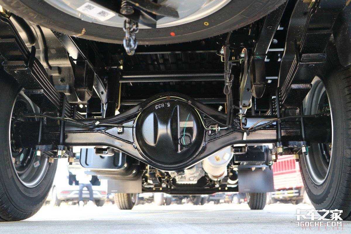 在后桥以及悬架布局上,该车采用邦乐3T级的后桥,后桥速比为5.833。悬架是采用前3后5片式的板簧设计,该配置对于部分拉的不算太重,并且为标载工况的卡友而言,其底盘承载能力绰绰有余。