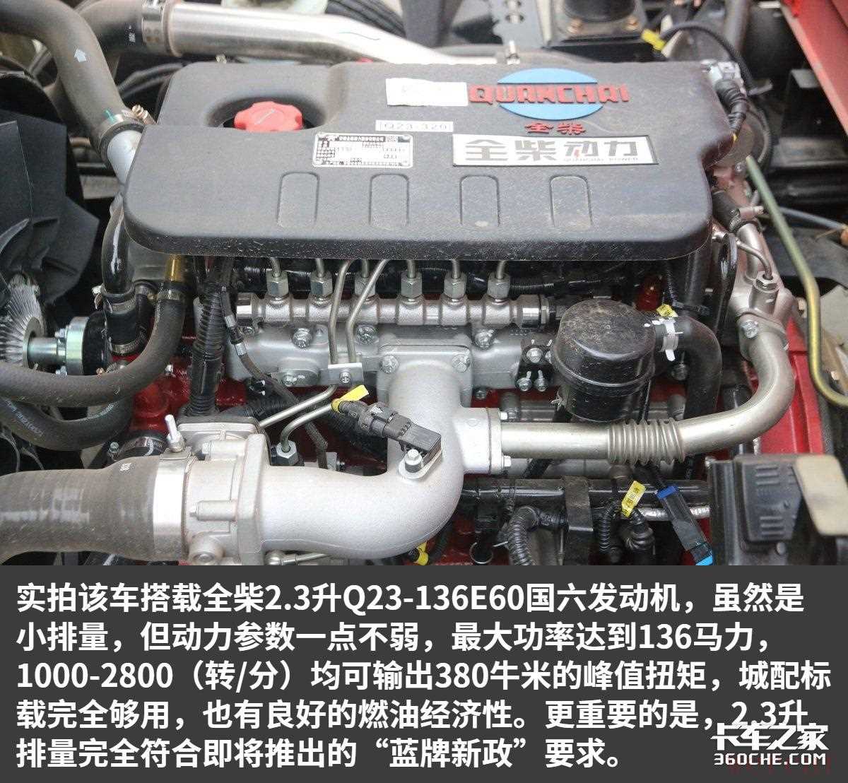 3. "发动机性能:" 136马力对于国六轻卡来说,是一个比较适中且实用的动力水平。它能够满足日常的城市配送、短途运输、工程拉货等多种工况需求,动力储备尚可。