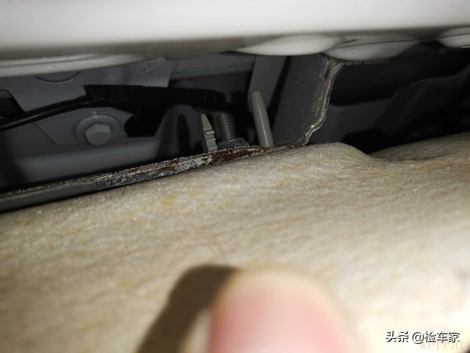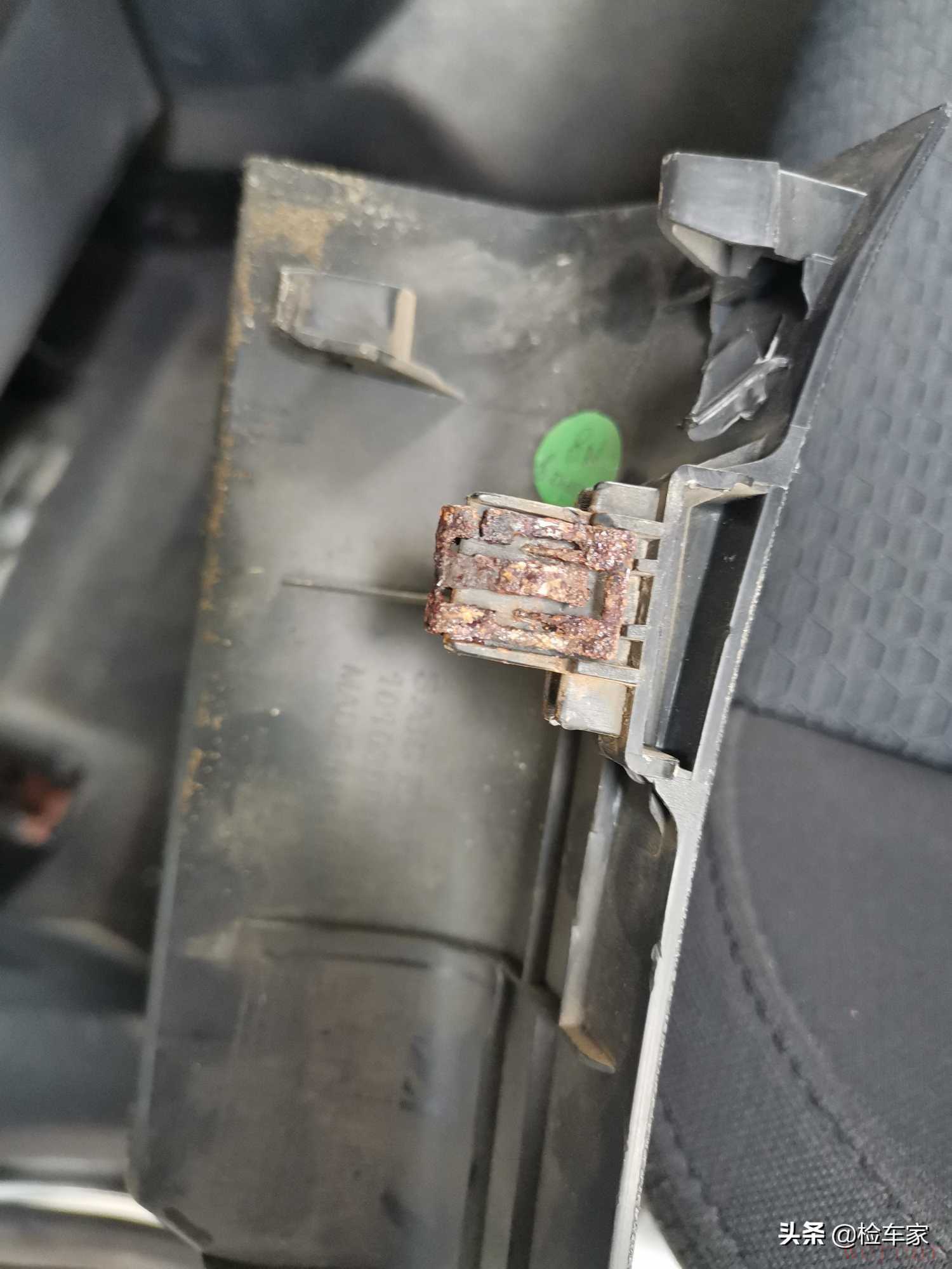 经车主同意后,把主驾侧的面板给抠开,嗬!这锈迹当场就让车主叫出了声。