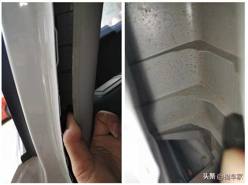 扒开C柱饰板,能看到内侧还有泥沙痕迹,咱们继续往上找找。