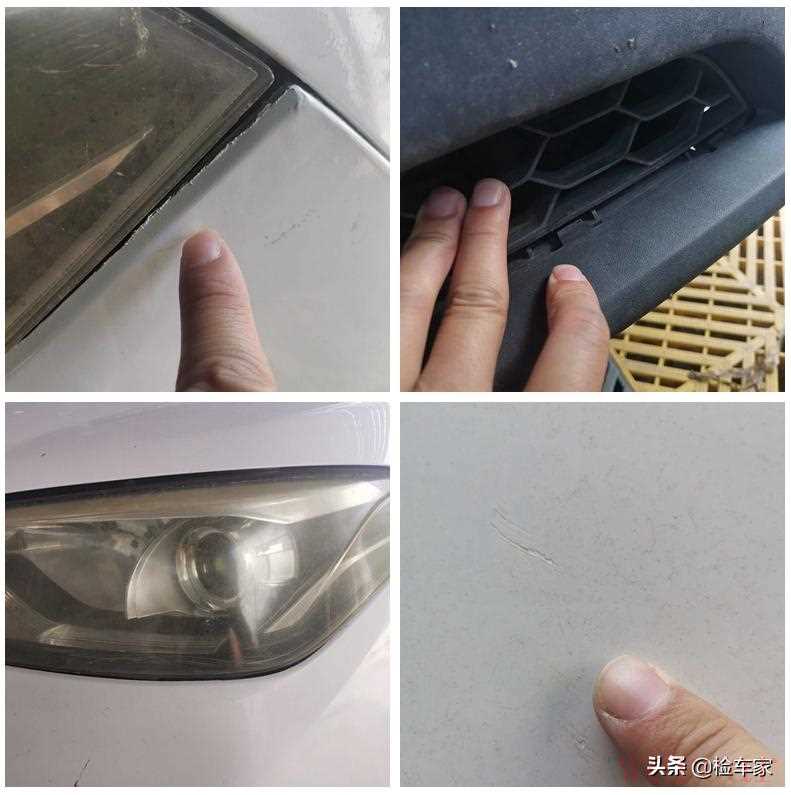 老规矩,我们先目视观察下这车的外观情况,很不出意外的发现,前杠有明显的瑕疵,中网破损,大灯泛黄,机盖表面不上设备也能看出喷漆,而且工艺很差像是街边小工随意喷的。