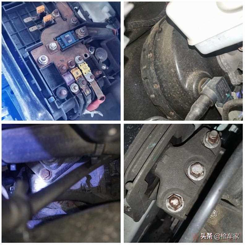 越往里看越是头皮发麻,到处都是锈迹,只要是有铁的地方就没有不生锈的,保险丝盒,变速箱和发动机的螺丝位置都没有逃过。