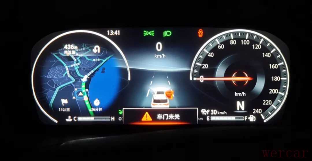 液晶仪表、中控屏的显示效果、分辨率都非常不错,基本和手机屏幕一个观感,同时还能实现双屏幕联动,3指滑动即可把中控上的导航投在液晶仪表上。