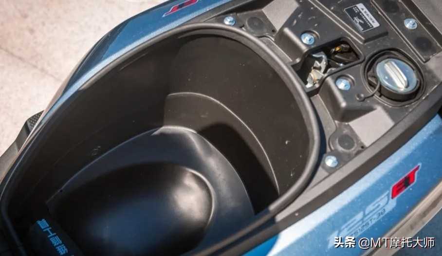 仪表部分采用的是一个液晶仪表,功能设计的比较简约。功能表现比较基础,像时速、油量、里程等等都有显示,同时夜间显示效果也是不错,也可以切换多种背光颜色。对于大部分车友来说,这款车的驾驶难度也是比较低,座高仅有720mm,身高1米6就可以双脚着地。实用性上,这款车的前置置物盒也是比较不错,能够满足日常所需。可以轻松容纳一瓶矿泉水和一些日常杂物,同时左侧还有2个USB充电口,可以满足骑行时的电子设备用电。