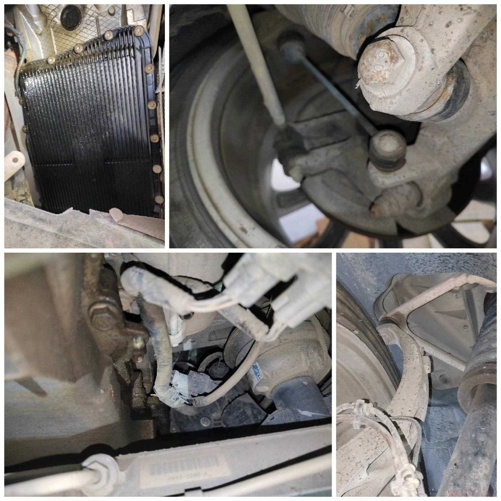 最后我们看一下这车的底盘,发动机变速箱油底壳均有漏油,但是没有分解维修的痕迹,前面减震漏油,拉杆球头均有老化破损,毕竟车的年限长了,底牌橡胶件老化也正常。