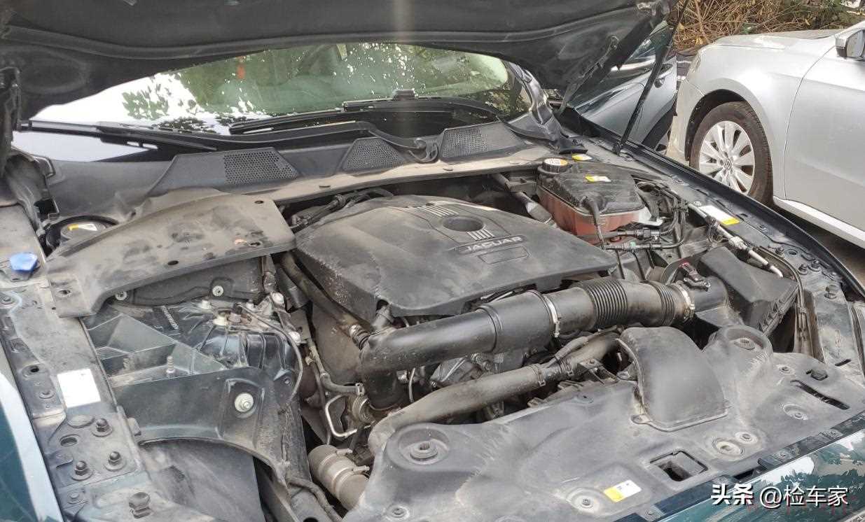 这辆捷豹XJL搭载的是一台2.0T涡轮增压发动机,最大马力240,最大扭矩340N·m,匹配8AT变速箱,百公里加速7.9秒,动力上可以说是中规中矩。不过这台发动机的通病比较多,要仔细检查一下细节。