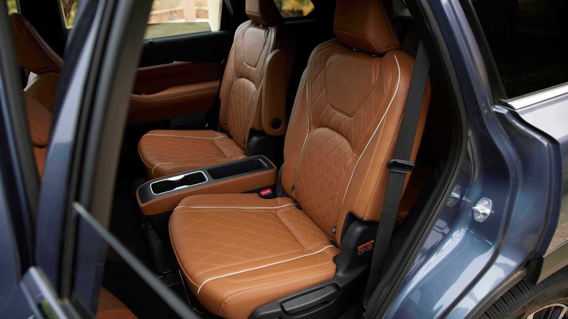不仅如此,英菲尼迪的设计师敢于在SUV上采用2+2+3的布局,并不仅仅是压缩第三排来取悦第二排乘客,第三排三个座位仍有不错的空间以及舒适度。得益于每排升高的剧院式高度,使得第三排乘客也有比较不错的视野,而且头部空间也不会受到太大的影响。