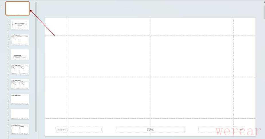 如果你想实用到整个PPT中,可以还有一个高级实用方法,实用幻灯片母版,点击【视图】——【幻灯片母版】——选择最上面那个,设置好参考线就会应用到整个PPT中了。