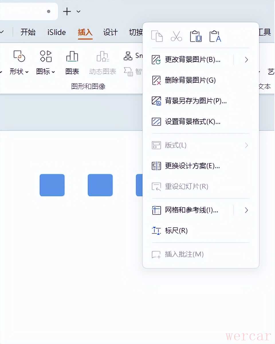 网格线是幻灯片背景上的固定间距的虚线网格,就像作文纸的格子——不能改动位置
