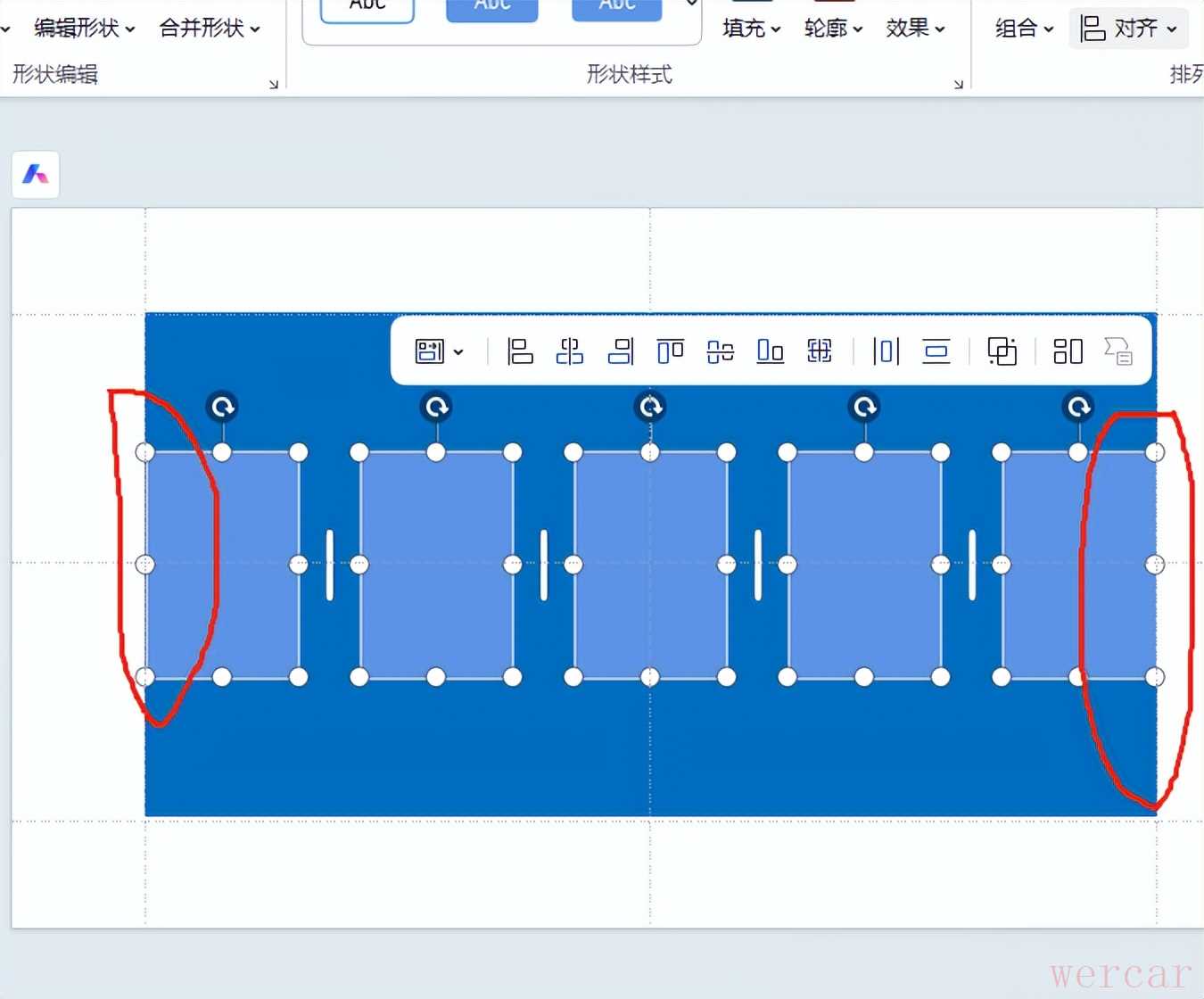 如果我们插入了很多个小形状,那么开启网格线后,拖动形状时会以网格为最小单位进行缩放,很容易就能拖出多个一模一样大小的形状。