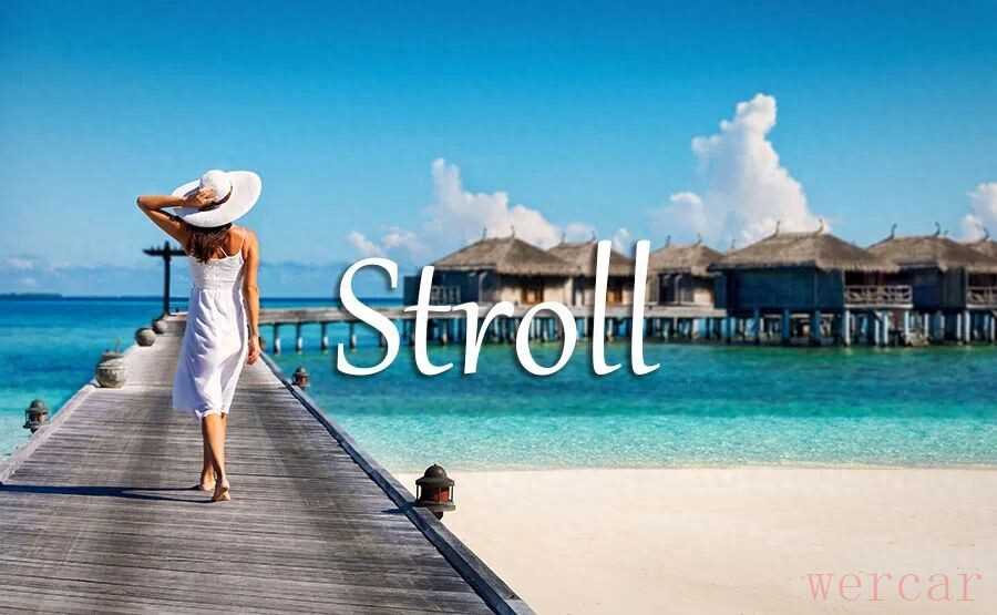 但从这个概念出发, stroll 随后发展出现在的主要含义指“散步、漫步、溜达、闲逛”,既可以作动词也可以作名词使用,侧重指以一种悠闲、放松、不紧不慢的方式走路,通常是为了休闲、观光、锻炼或消磨时间等。比如: