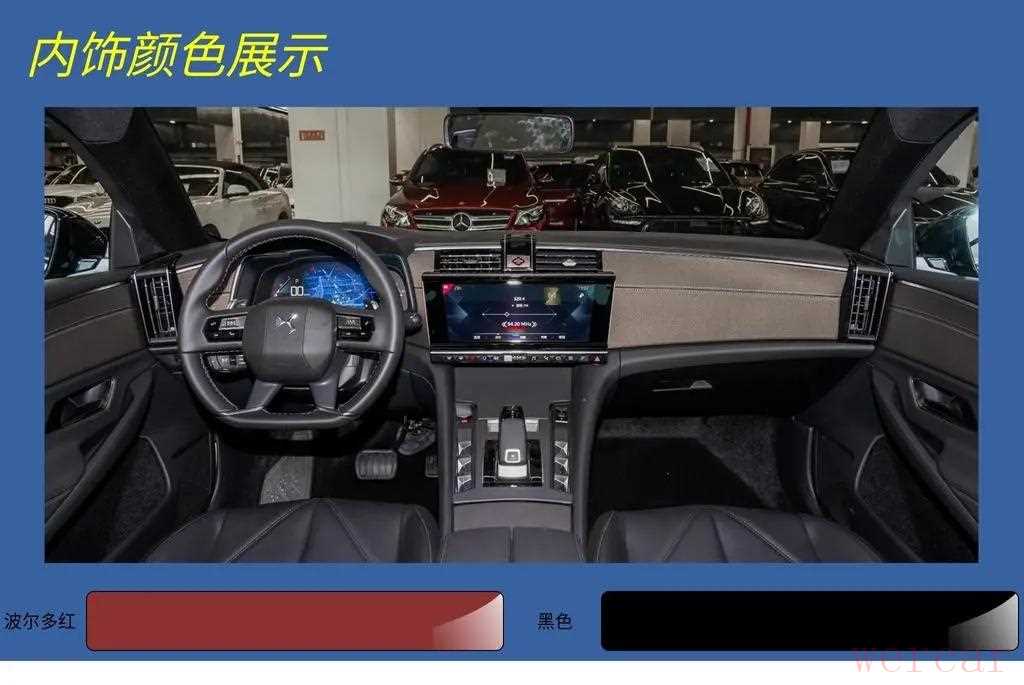 内饰的颜色方面,根据车型的不同,DS 9提供了波尔多红以及黑色两种颜色。